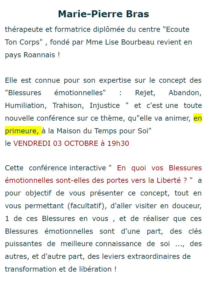 Inscription auprès de Marie-Pierre au : 06.24.28.58.21